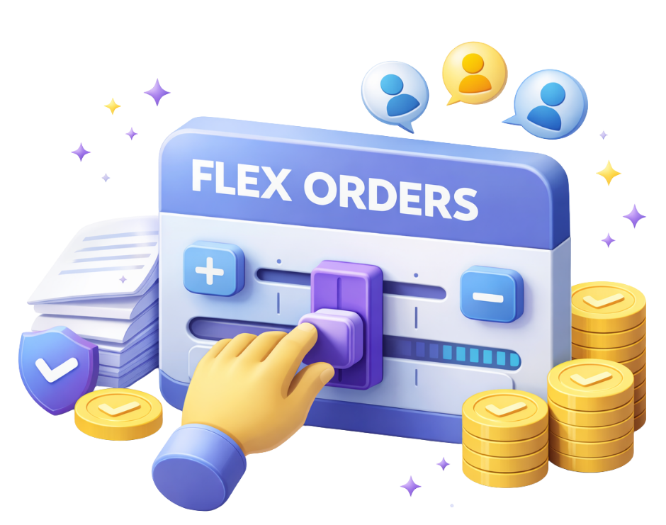Flex Orders work well for burst buying, testing markets, or filling short-term gaps